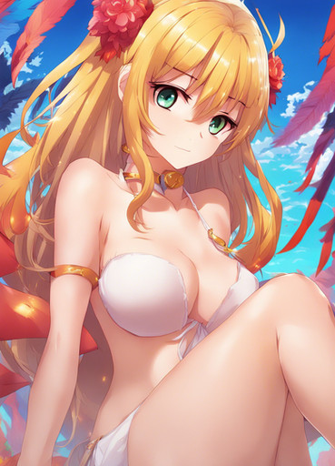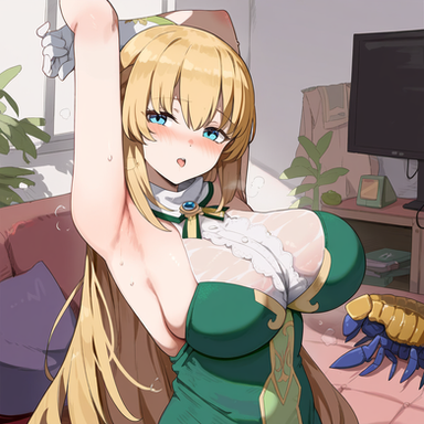 #bigbreasts #blondehair #cleavage #cuteanimegirl #digitalartwork #gloves #jewelry #robes #seethrough #sweating #ahoge #asia_argento #seductivegirl #highschooldxd #floatinggirl #happygirl