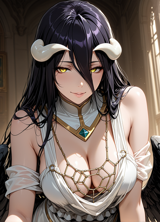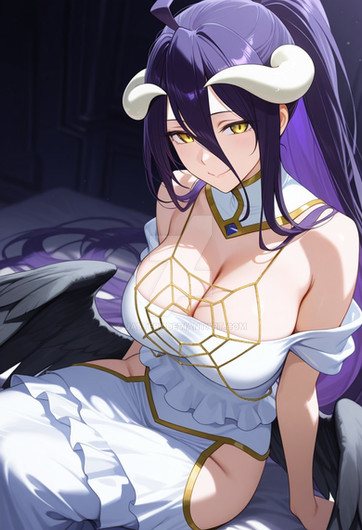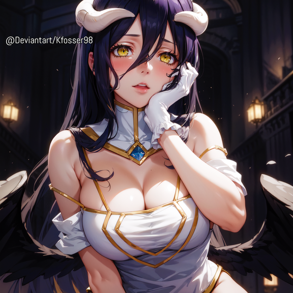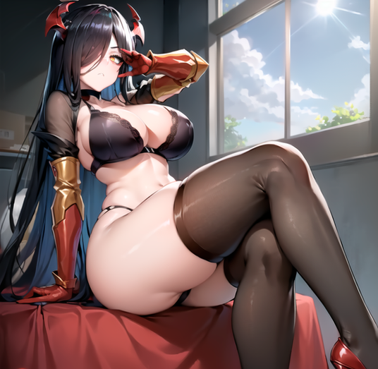 #bigbreasts #cuteanimegirl #digitalartwork #gloves #stockings #sexybeautiful #aiart #posingsexy #blackhairedgirl #demongirl #goldeneyes #albedooverlord #overlordfanart
