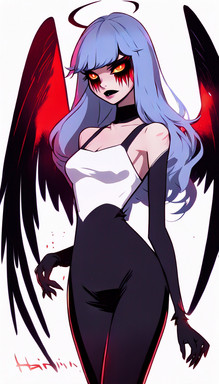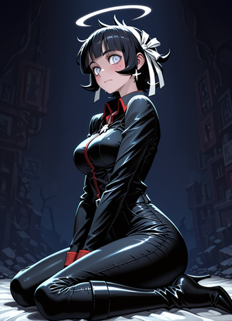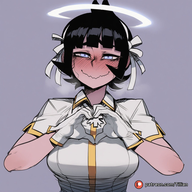 #bigbreasts #cuteanimegirl #digitalartwork #gloves #sexywoman #sexybeautiful #officeoutfit #helltakerfanart #angelgirl #azazel #blackhairedgirl #white_eyes