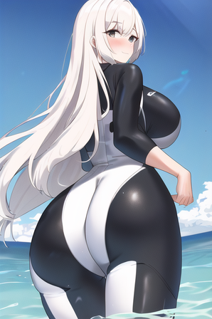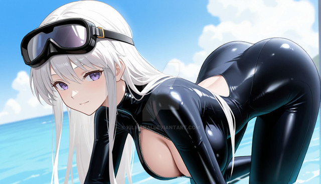 #beautifulgirl #cuteanimegirl #digitalartwork #purpleeyes #sexygirl #sexybeautiful #shipgirl #aiart #greyhairedgirl #azurlane #azur_lane #enterpriseazurlane #beach #latexbodysuit #bigassbooty
