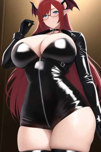 #beta #bigbreasts #blueeyes #cuteanimegirl #digitalartwork #blushinggirl #sexybeautiful #shorthairgirl #aiart #posingsexy #latexbodysuit #theeminenceinshadow #cleavage #glassesgirl #legsup #widehips