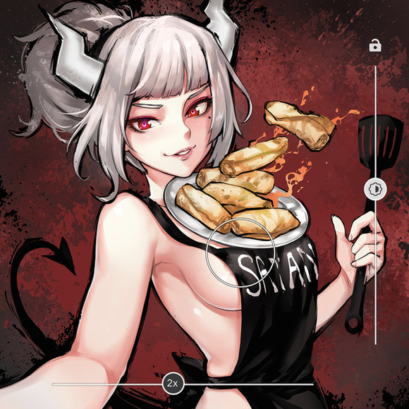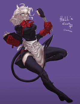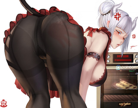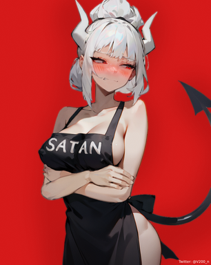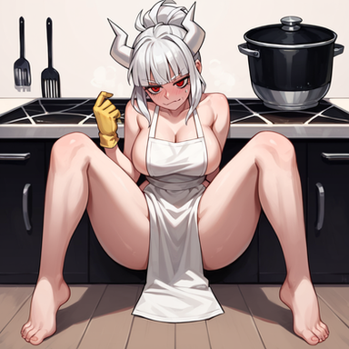 #cuteanimegirl #digitalartwork #gloves #redeyedgirl #sexywoman #sexybeautiful #officeoutfit #helltakerfanart #bigbreasts #demongirl #nakedapron #kitchenscene #whitehairgirl #helltaker_lucifer
