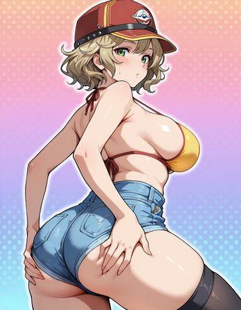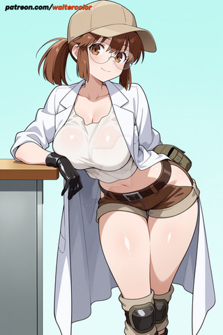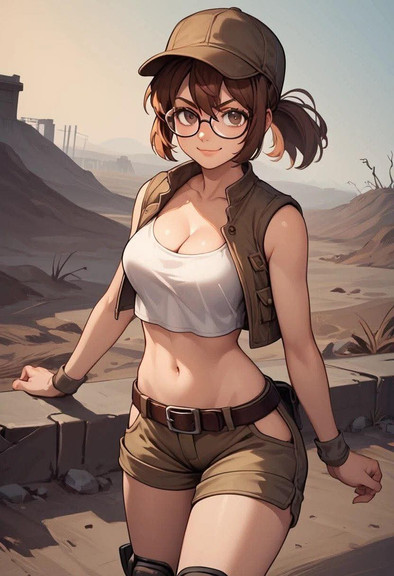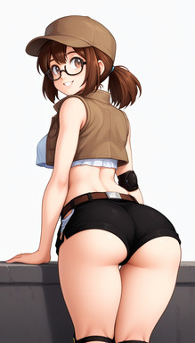 #bigbreasts #cleavage #cuteanimegirl #digitalartwork #glassesgirl #militaryuniform #metal_slug #fio_germi #aiartwork #frombehind #shortshorts #bigassbooty