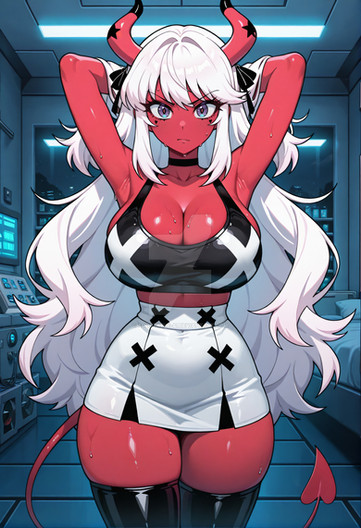 #demongirl #bigbreasts #cuteanimegirl #justice #sexybeautiful #lingeriesexy #helltaker #whitehairgirl #glovesandboots #helltakerfanart