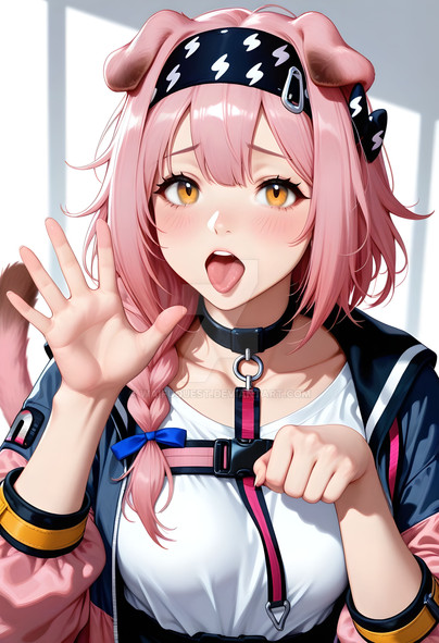 #bigbreasts #cuteanimegirl #digitalartwork #fanart #gloves #pinkhairgirl #sexygirl #widehips #aiart #perseus #tonguestickingout #waving #shipgirl #twintailsgirl #azur_lane