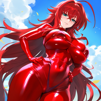 #bigbreasts #cuteanimegirl #digitalartwork #fanart #gloves #plugsuit #redhairedgirl #sexybeautiful #handsbehindback #aiart #posingsexy #cosplayanimemanga #highschooldxd #riasgremory #latexbodysuit