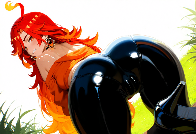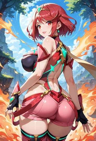 #beautifulgirl #cuteanimegirl #digitalartwork #redhairedgirl #sexygirl #sexybeautiful #shorthairgirl #aiart #xenobladechronicles2 #pyra_xenoblade #cameltoe #frombehind #grinning