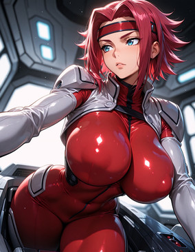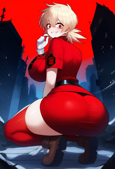 #bigbreasts #cuteanimegirl #digitalartwork #frombehind #gloves #hat #redhairedgirl #sexywoman #sexybeautiful #shorthairgirl #latexbodysuit #cells_at_work #ae3803