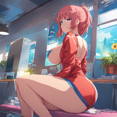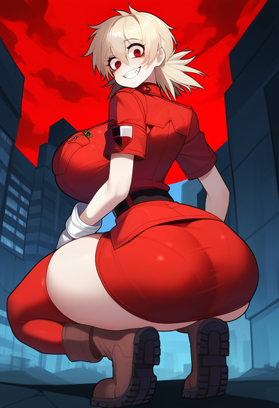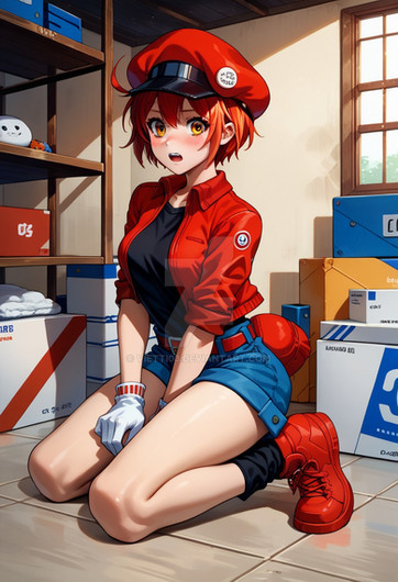 #anime #animegirl #bigbreasts #cameltoe #cuteanimegirl #digitalartwork #frombehind #gloves #hat #redhairedgirl #sexywoman #sexybeautiful #shorthairgirl #latexbodysuit #bigassbooty #cells_at_work #ae3803