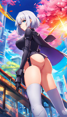 #bigbreasts #cityscape #cuteanimegirl #digitalartwork #gloves #sexygirl #shorthairgirl #widehips #aiart #seethroughclothes #latexbodysuit #shinylatex #blondegil #sakura_igawa #taimaninseries #frombehind #spreadlegs #bigassbooty