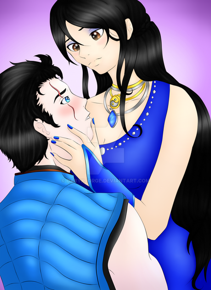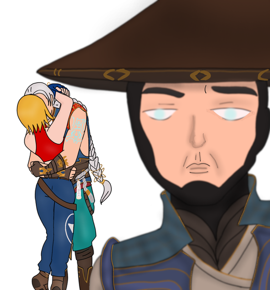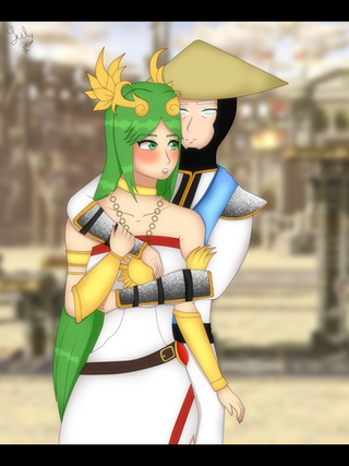 Raiden comforts Edelia after she, among one of her meditations, remembers when Shinnok had her as a slave.