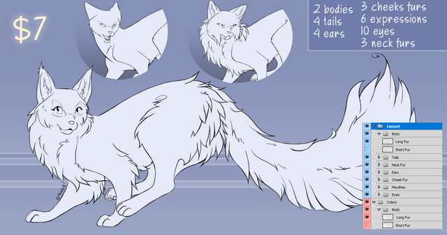 - There is many folders for: tails, hairs, eyes, mouths, other extra, wings etc...
