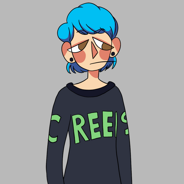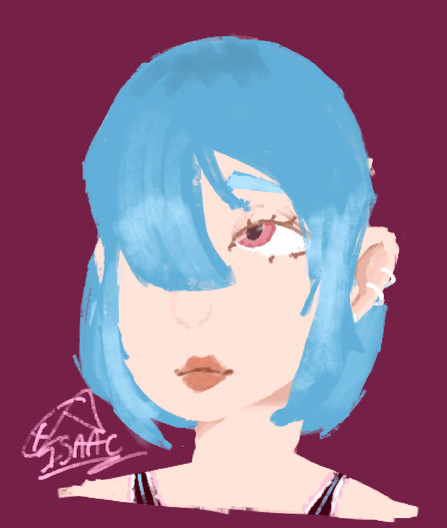 Una cosa, no sé si a ti te dió esa impresión, pero cuando la dibujé me pareció que por el pelo no tiene ojos (?