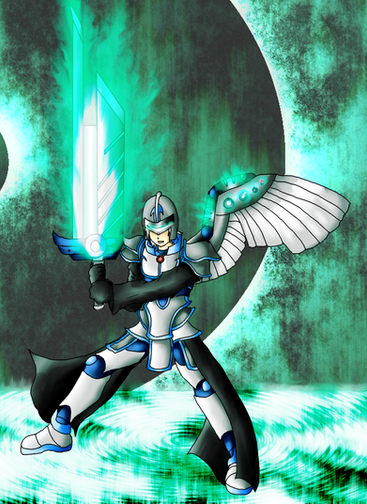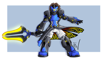 #armor #blue #cyborg #dark #darkness #light #mecha #megas #robot #sword #warrior #xellox