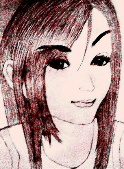 Hokay, I used a photo reference for this sketch, so if the head looks weird, it's not my fault! That's the way her head inclines in the photo, also, in the pic her hair was up, and she requested it down, so I had to lengthen the hair some, and thus I think I may have screwed it up a bit, but please comment if you have the time, I'd really appreicate some helpful hints and maybe a little praise oh and criticism *nods*
