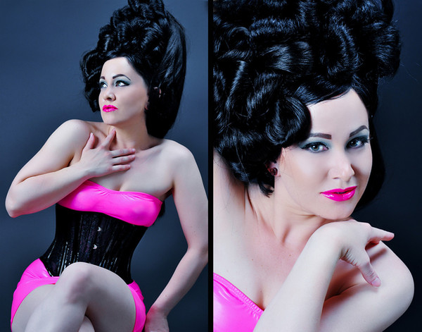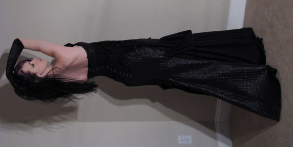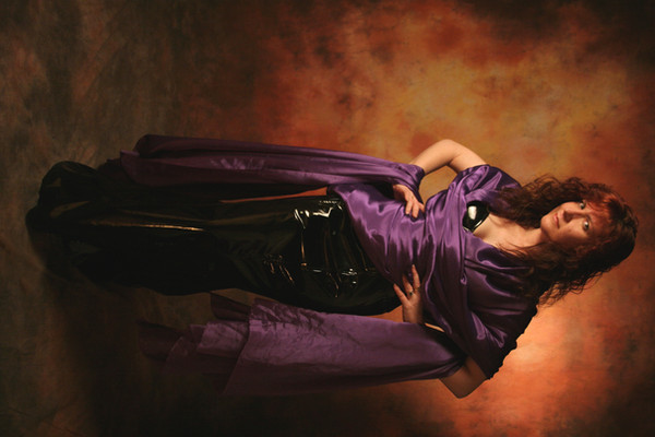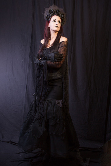 Like a redheaded Morticia Addams in a half-see-through dress: stunningly beautiful!