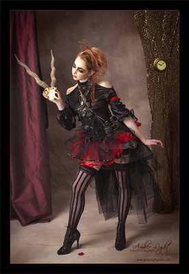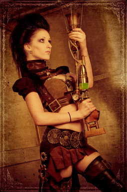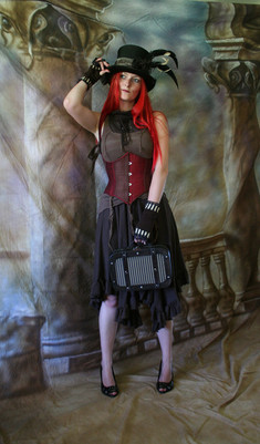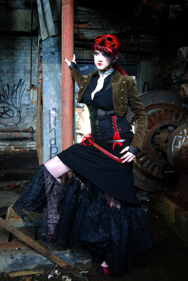 Photographer - Adam ChilsonEach month D.M. Gremlin Studios hosts an open house event for models, photogs, musicians, etc. June's theme was Steampunk. This genre has always interested me and the idea that a whole night was going to be dedicated to it made me bounce with joy. While I would love to have sewn a neovictorian/steampunk outfit, I settled for something less time consuming in construction. Next time I'll be more prepared as I have ideas forming in my head as I type this.