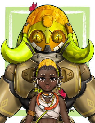 Her nickname is "Paintburst". The real name is Nina. She doesn't have a surname because Nina has been orphaned in omnic crisis. She has been adopted by some teen gang which was wanted for their illegal paintworks on the city walls. They later turned their sprays and painting equipment into weapons in the war to fight towards omnics. The rest of the gang will be introduced soon