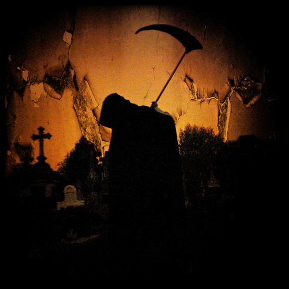 Wonderful: it's both somehow chilling, when you notice the figure, and relaxing in a strange way if you ignore the figure. It gives the sense that wherever you look, wherever you go, you will always find death.