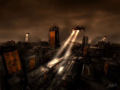 Original concept for GDI mech factory in the Tiberian Sun Universe.Model in Sketchup, rendered in PSCS2