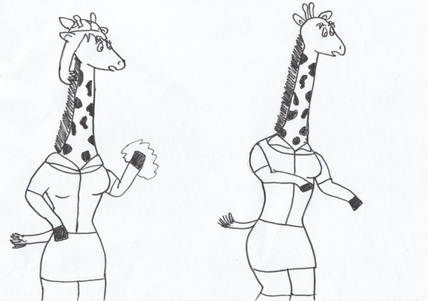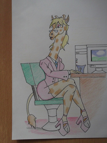 well, the explanation for this pic is due to some latest facebook riddle thing that happened several days back, get the riddle wrong, you had to change your profile pic to a giraffe...she got it wrong and transformed into an anthro giraffe...so, yeah...i made this up for shits and giggles...its not that great cause i only drew it out not long ago. enjoy!