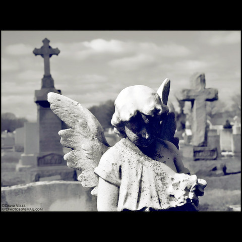 I had to add this to my favs. The way you have captured the statue is absolutely brilliant. I'm not one much for religious imagery, hence, I'll mention the pose and aesthetic of the composition. My eyes immediately are drawn to her eyes, following her gaze upwards to ward the white negative space, then, contained by the branch above her, it follows the cross down to her arm, and around, resting in the dark area of her wings, before continuing in a circle to the branc, and back to her eye. A perfect composition!