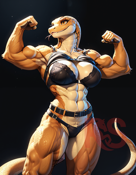 #digitalart #scalie #adoptable #anthrofurry #furryanthro #gym #hugebreasts #reptile #snake #sportsbra #sportswear #muscularfemale #cobragirl #aiart #adoptablesopen #erectnipples #aiartwork