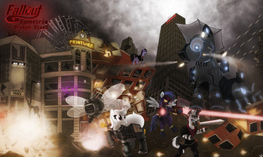A commissioned pic for depicting a scene from his story:Β Fallout: Equestria - Fall of HopeWhat's better than a shoot out with some Raiders? A shoot out with Raiders on a train! That not enough? Sprinkle in a few innocent hostages too.