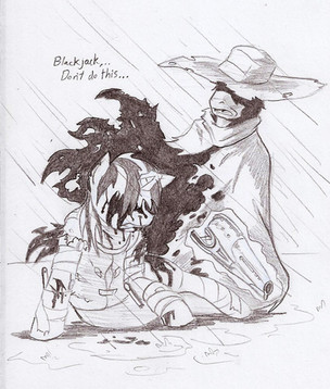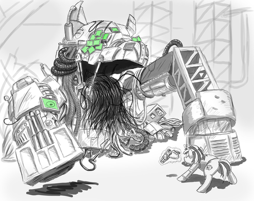 Fucking AWESOME depiction of it. Love Blackjack's stance in this one, and that design is just impressive, much better than what I pictured when I read it. Great job!