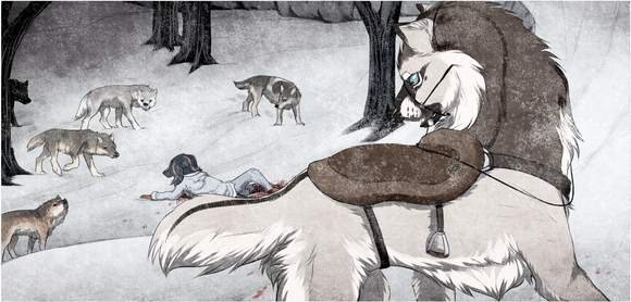 He didn’t test it, he ran towards where he could smell his handler, and as he came closer and closer, he could smell bears and blood. This sent chills down his body, and he ran faster towards his handler. In the time it took to get to him, he could see his handlers body roll away from the brown bear as it smacked him in the face. He was covered in wounds and blood. This sent rage thundering through his veins, and he barreled down towards them sliding in between them and planting himself over Berkly who struggled to lift himself up as blood dripped off of him. Koda lowered his head and his fur stood on end, drool dripped from his teeth and lips as he snapped and snarled loudly at the two bears. His rage was only increased when Berkly coughed, blood pooling out of his mouth onto the green grass. The slashes on his throat were life threatening and Koda knew he had to do something about these bears and then get his handler to someone who could help him.