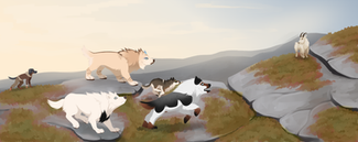 Berkly walked happily through Aqtuqtuaq Forest, his eyes looking at all the beautiful scenery, and the mountains he could see off in the distance. He was making his way down the hill to the river to retrieve some water for himself and Koda, who was still currently sleeping. The sun had only recently made its rise over the tall mountains. He was enjoying the cool, but not too cold morning. With a light breeze carrying over the forest, a rustling sound echoed throughout. Birds were chirping, singing their praise to the sun and swooping down to the grass below, looking for their first meal of the day. It was one of Berkly’s favorite things to go out with Koda, his most loyal companion. He was a gentle soul, and showed Berkly how to just relax and love the simple things. It was this attitude that allowed Berkly to relax more than usual and smell the flowers when out and about. Koda was a poor hunter, but a great travel companion.