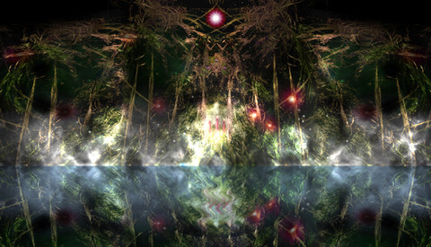 A magic marsh, with black, green and blue colors, and the lights!