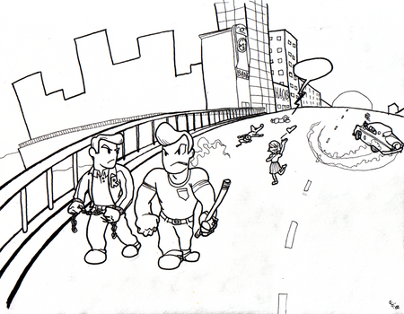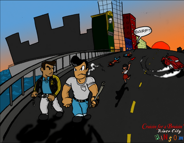 [EDIT]: Getting closer.. Need to add his glasses and finish the text. Any suggestions? I'm not 100% on the dialogue, just making stuff up as I go. Everything said has a really 90s feel because that's how the comic looks.