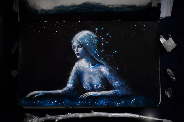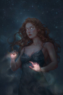 #blue #classical #ethereal #girl #leaves #magical #moonlight #mystical #night #practice #reference #romantic #shiny #stars #study