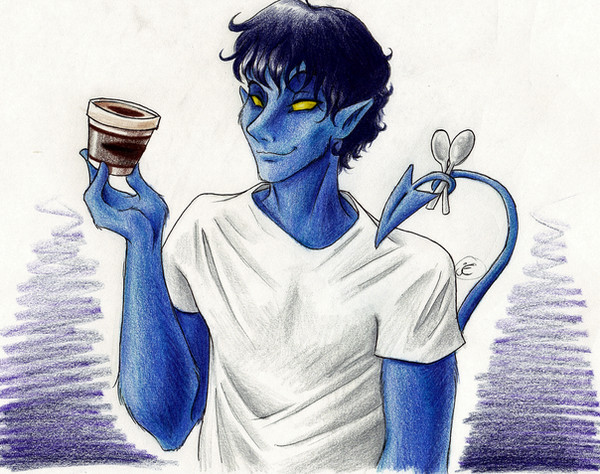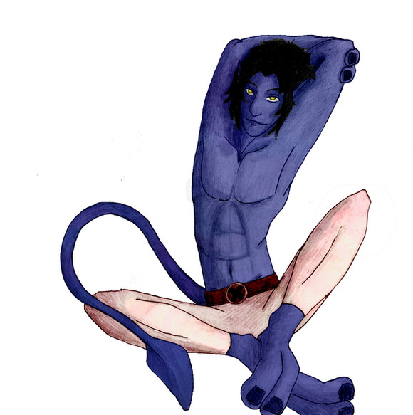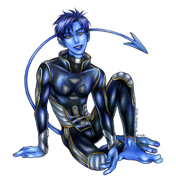 The morning after. ;DHeh, yet another "pairing with only one person present" drawing. XD It's meant to be a Nightcrawler/Logan reference. Heehee, Nighty doesn't seem to mind all the damage. <3