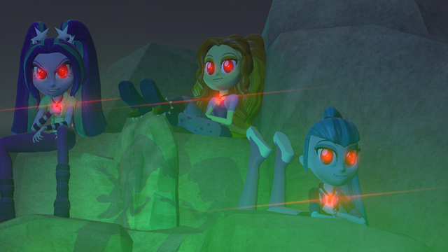 The cocoons above shake and shudder as the ponies inside twitch like insects to face the distraught mare on the cave floor. Their eyes, too, share an ominous verdant glow, and they speak in unison.