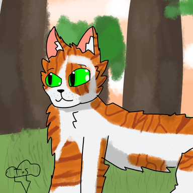 They’re name is Stormwind. They’re a half clan cat. Dad was in Shadowclan and mom was in Thunderclan. They’re just a big ol grumpy ball of fluff and I love them. ^-^