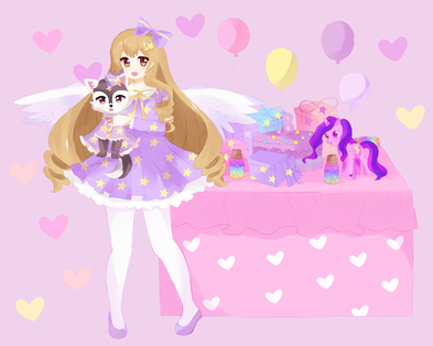 I love the opened present too and her adorable Wish Pony on the table she looks SOOOO adorable and cute I love her adorable expression and mane and shooting star and heart cutie mark! I love Hazel's three adorable little wish jars with the colourful stars inside! And I love her adorable yummy cute 8th birthday cake!!!! I love the adorable 8 and I love the cute stars on the cake and adorable purple frosting!