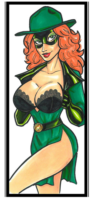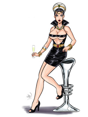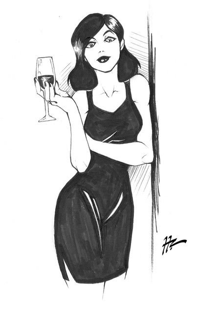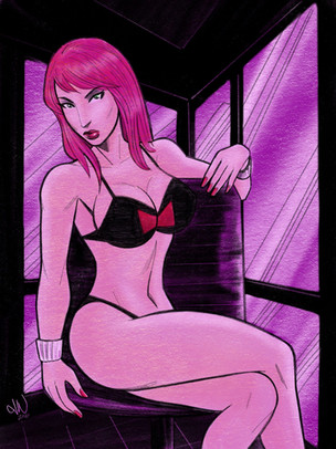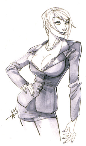 This sexy lady was done with pen and ink and these manga texture sheets things you press on. That's what all the dots are.Related content