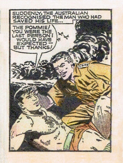 This cowardly soldier appears to be nomally dressed in the black and whitecomic original. All I did was to selectively colour the detail below the waist and, lo and behold, his hidden panties appear!