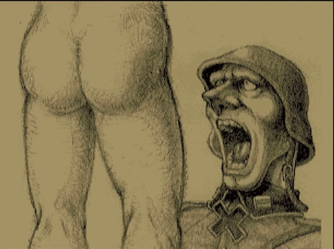 Will the captive reveal all? The torturer doesn't care, he's too engrossed in his winder.