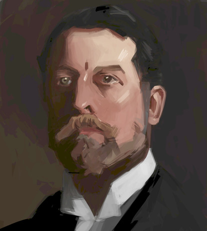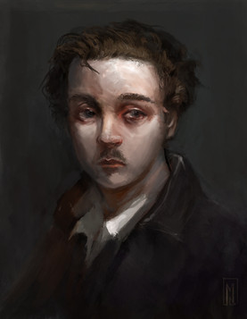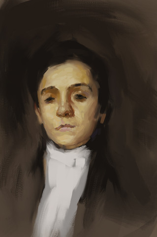 I set myself a practice piece - looking at John Singer Sargent's portrait of Leon Delafosse to try and recreate through digital paintinga few different brushes of mine used, but mostly it was with teh mixing paint brush mode with the custom settings of wet: 90%, load 100%, mix 35%, flow 100% - and without sampling all layers, so i just work mostly on just a single layer or two.