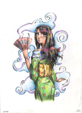 The Green colour as a symbol of jealousy was an unintended effect, I just wanted to add some green to the piece, but I'm glad it can be interpreted as part of the theme. About the Fever, it's more of a genuine interest in the culture...and let's just say I had plenty of time to observe and learn asian features (not to offend the rest, but Asian girls I've met are very pretty and nice!)