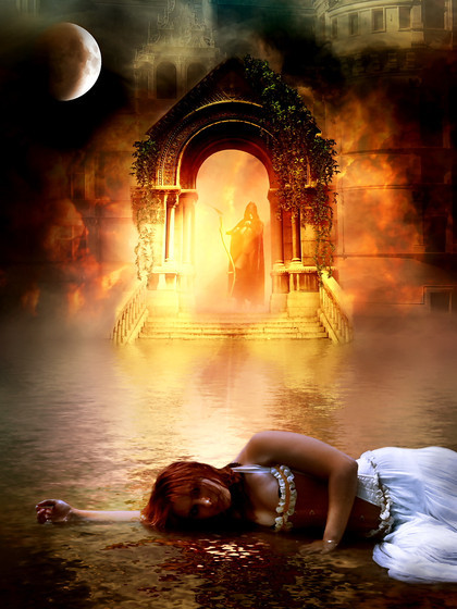I have hardly been as satisfied with my work as with this one. I had just part of the idea when I started, and gathered a lot of stock from both artists. And then it just came, piece by piece. I think Baudelaire and their stock served as the greatest inspiration. Also, a funny fact: I was really sick while making this, and yet I was working so hard and inspiration just took flight. The last thing I never thought adding and yet I did and I am damn glad I did, was the hooded wonderer. Is that Death? Or just some mysterious stranger? We shall never know.