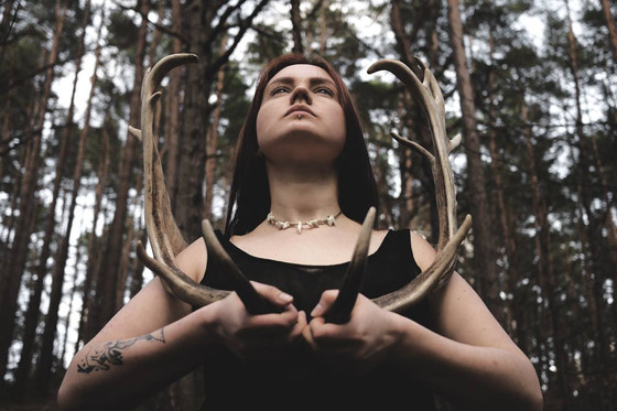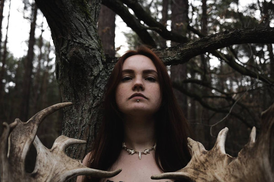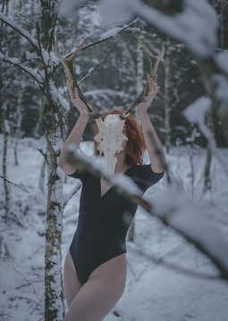 #deergirl #fallowdeer #blackandwhitephotography #determination #forest #girl #horns #redhead #witch