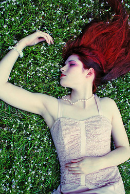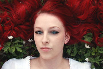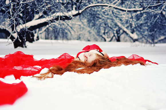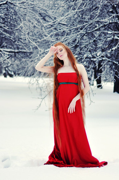 This is such a beautiful photo, your pale skin contrasts beautifully with your red hair and red dress, stunning
