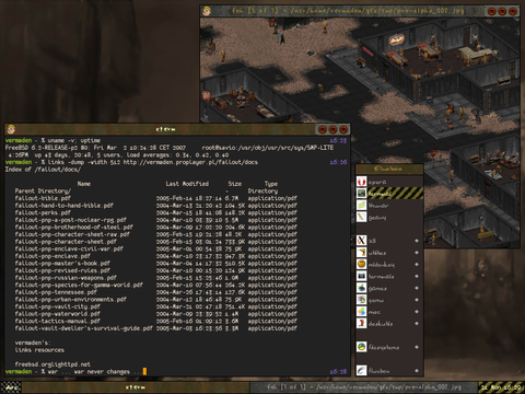 - additional stuff: xfce4-panel, dzen2, xmobar, ibus, conky-cli, nixieclock, own shell scripts, compton …