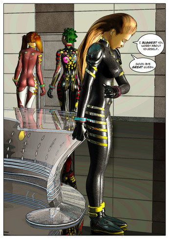 As good as the B/W was the color version is better still. So many details stand out and you get a much better look at the helpless women inside the suits. Great work!