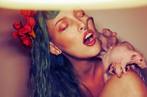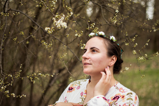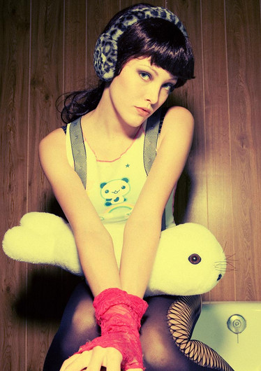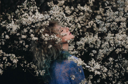 with the blossoms in the back and the wicked awesome hair. Its like a big explosion of cotton candy. beautiful simply beautiful