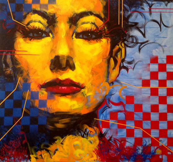 Even though this painting comes from anger (or tantrum as you described it), as well as that dream, I really like this piece. The style you chose works quite well. I like how the dress is a combination of many geometrical objects and patterns. Like it could represent the different feelings you've felt over this past year (possibly longer). Also, the way you are holding your wrist makes me think of the somewhat recent surgery you had on them because of (I believe) carpal tunnel syndrome. Sorry about all the things you've been going through recently....
